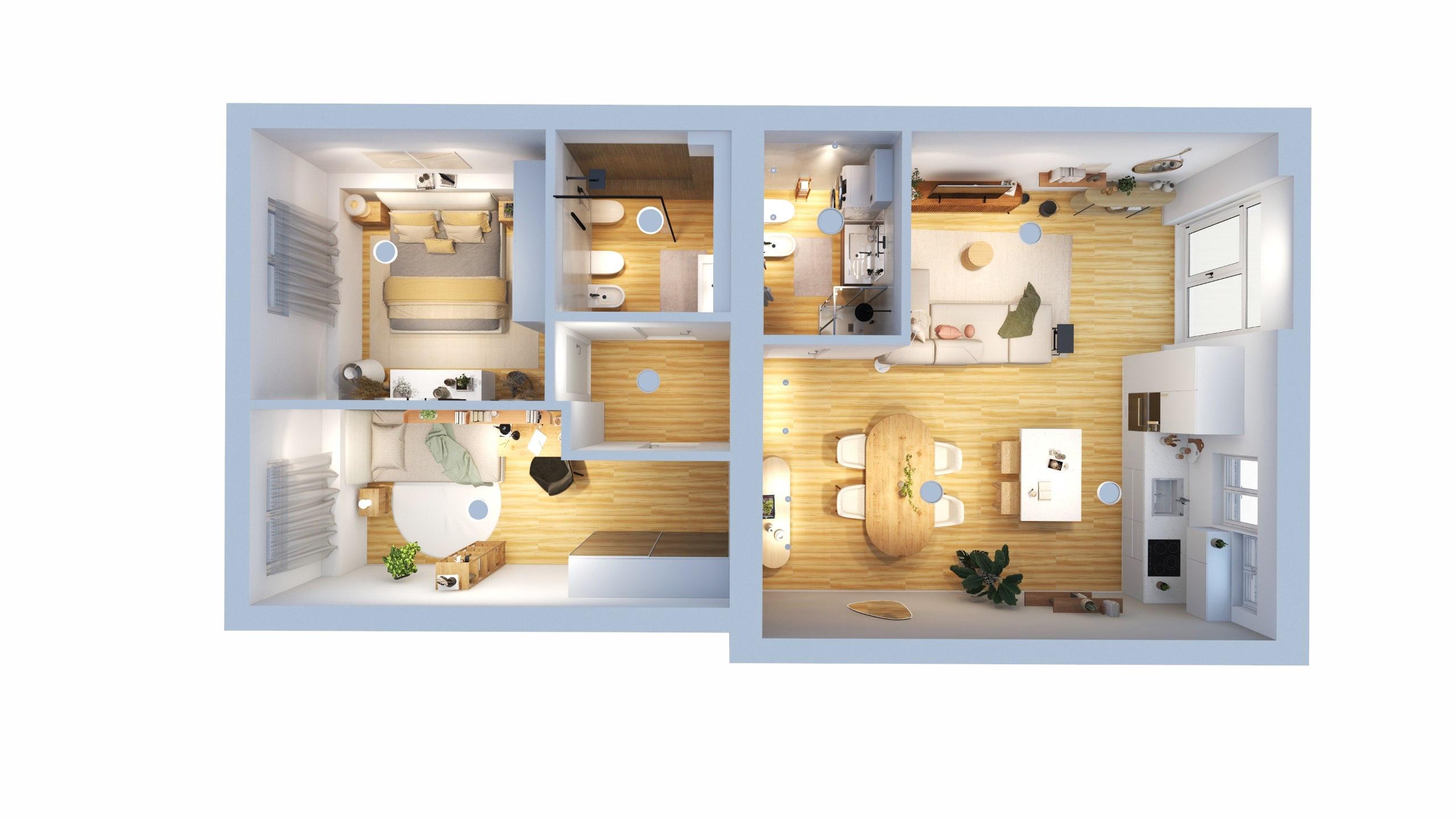 La riqualificazione ha coinvolto ogni componente dell’abitazione, dalla nuova distribuzione interna alla scelta delle finiture, con l’obiettivo di creare un ambiente che unisse stile, comfort e qualità costruttiva.